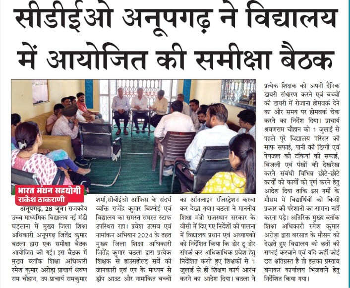 राजकीय उच्‍च माध्‍यमिक विद्यालय नई मण्‍डी घडसाना , जिला - श्रीगंगानगर , राजस्‍थान